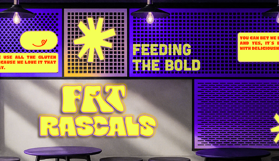 A playful brand and spatial identity for Fat Rascals, shaping the storefront and dining experience.